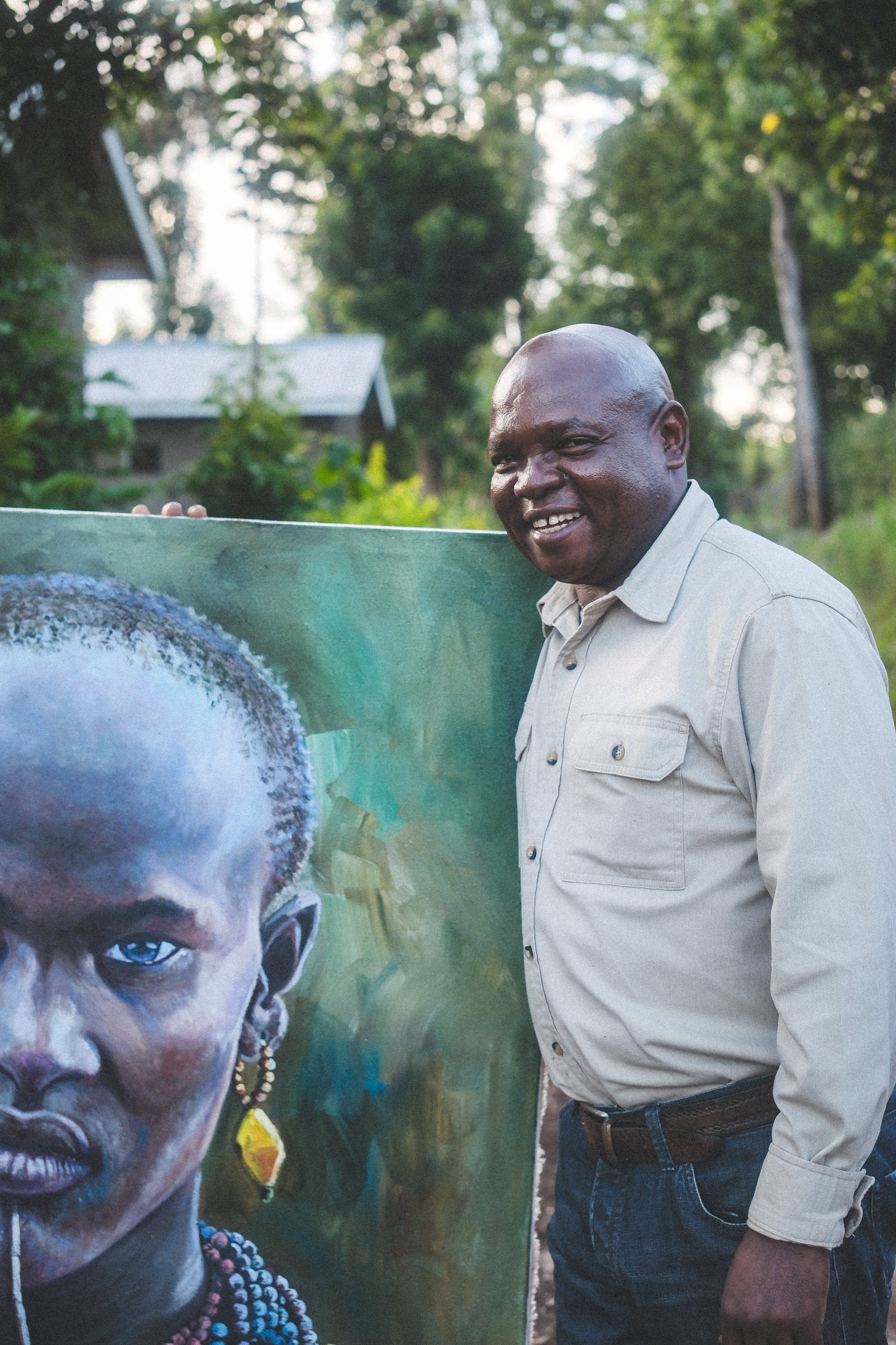 From Migua village in the Tabora region, Mathew comes from a family of 9 children. He dropped out of school very young due to his family moving around, but he finally settled in Dar es Salaam where he started his painting career. At 9 years old when he was still in school his talent was evident, with teachers regularly asking him to draw maps and diagrams for them. Also, as a young boy he would help his dad who was a carpenter, but he always wanted to paint and at 16 he started his career. He uses many techniques, including brushes, knives, fingers and spoons, and uses many mediums from oil to traditional handmade paints.